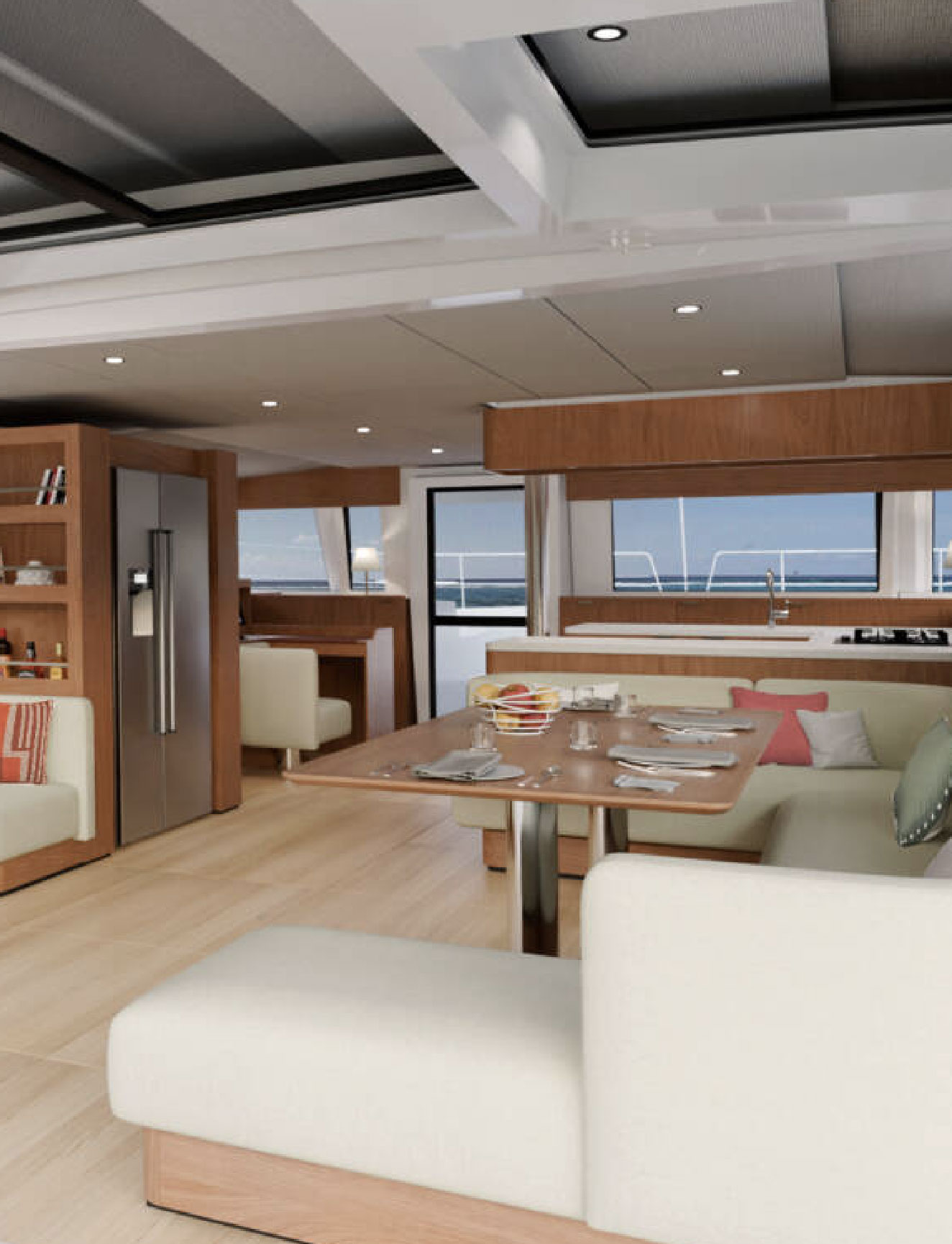 Audace, innovativo ed elegante, il Bali 4.2 mantiene tutte le caratteristiche iconiche della gamma – introducendo importanti novità: una porta che collega la prua con gli interni, la possibilità di quattro bagni con due box doccia, e una cabina skipper con bagno e doccia separati