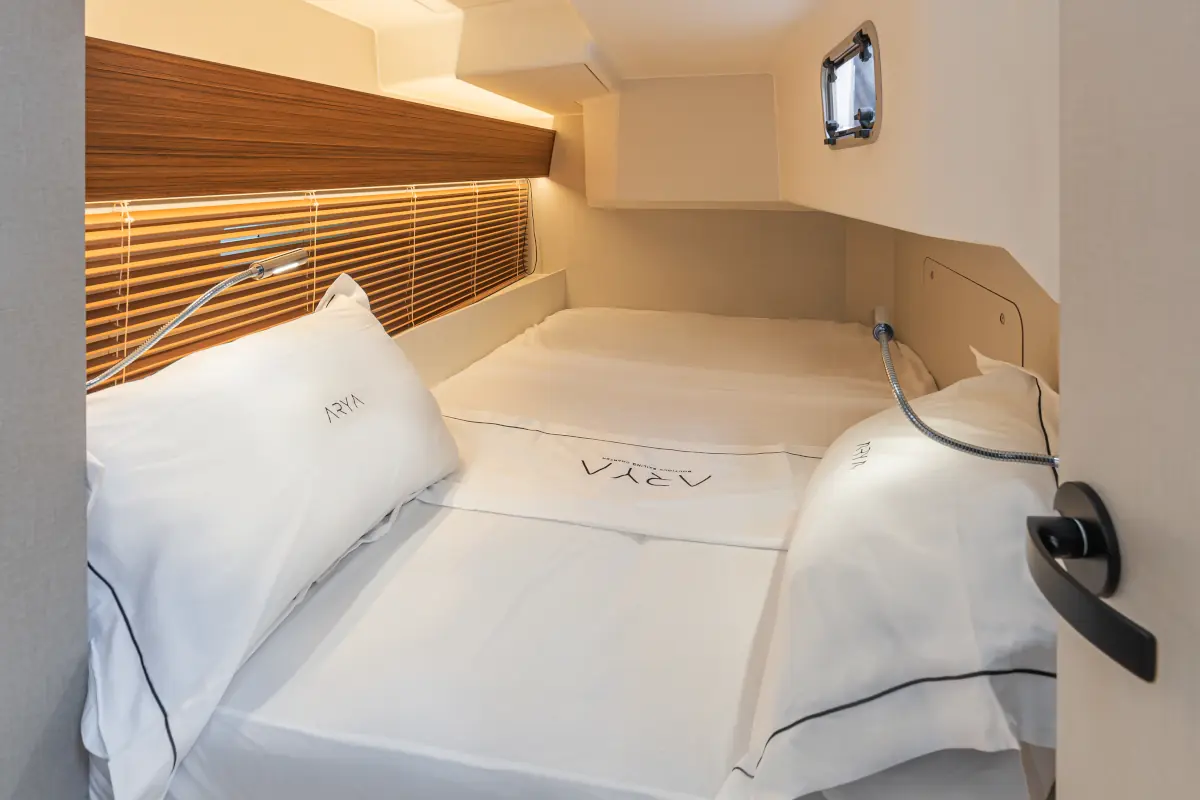 La versione Bellissima unisce interni di design, legni pregiati e rivestimenti di alta qualità. Il piano di coperta in teak e le attrezzature attentamente ottimizzate garantiscono comfort senza compromettere le performance.