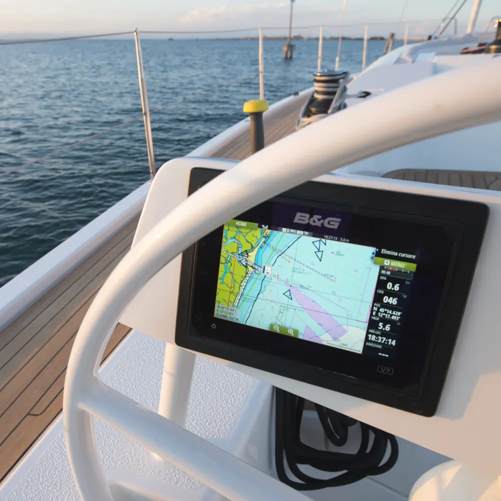 Scafo e coperta in sandwich con tessuti di vetro biassiali e unidirezionali, resina vinilestere e rinforzi in carbonio: robustezza e leggerezza al servizio della performance.