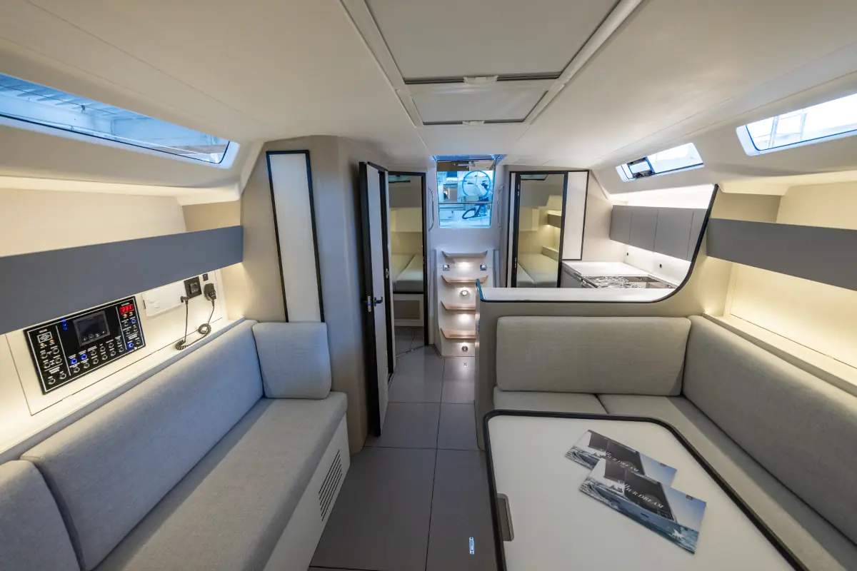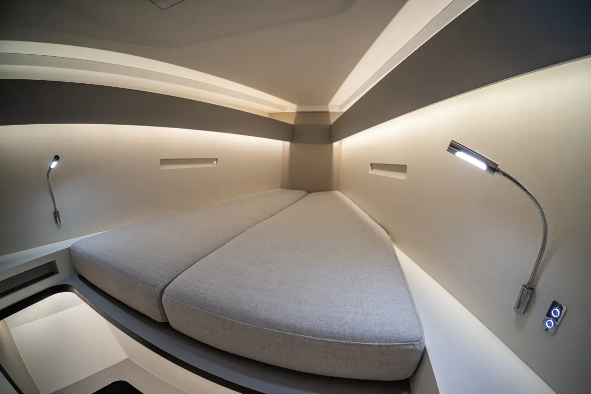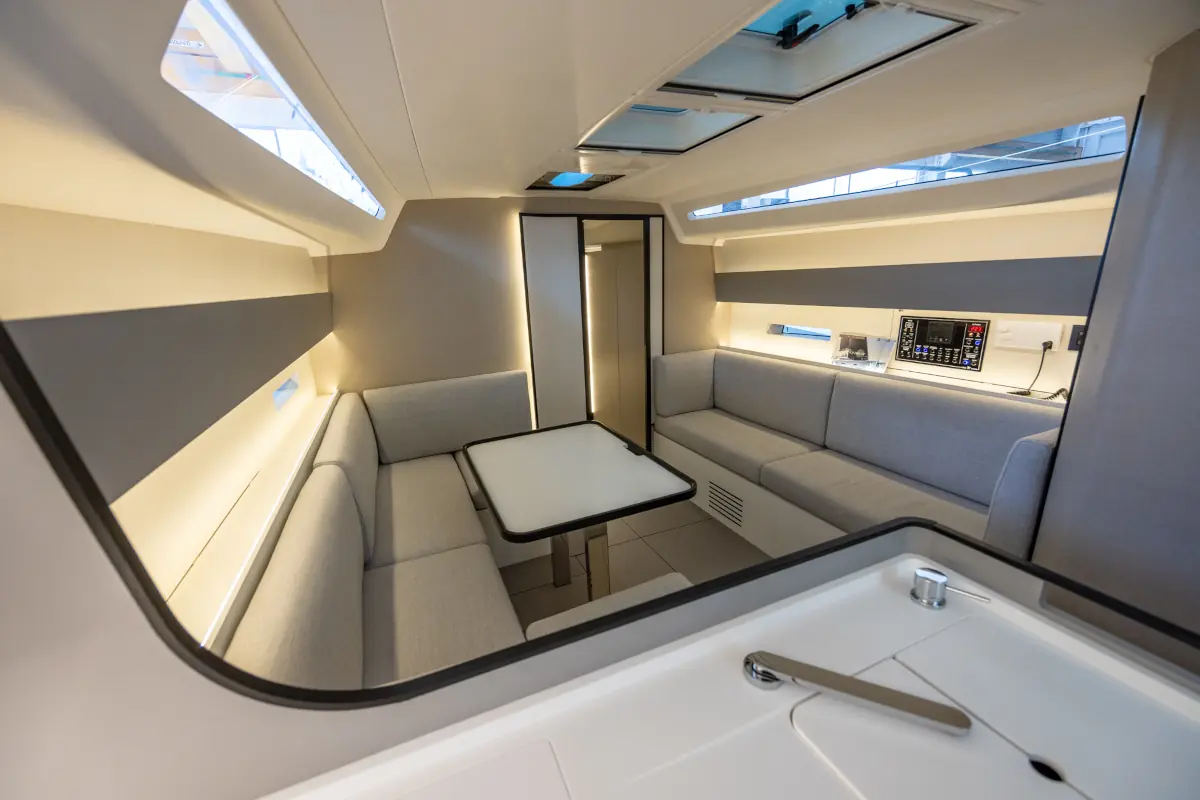 Spazi ottimizzati per offrire comfort anche in crociera lunga, senza rinunciare all’anima sportiva. Materiali e finiture esprimono qualità e stile.