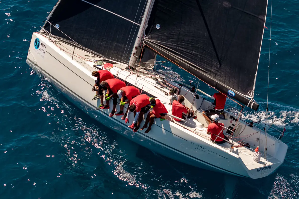 L’Italia Yachts 9.98 è una barca veloce, reattiva e al tempo stesso facile da condurre. Progettata per offrire il massimo in regata, mantiene un ottimo equilibrio anche con venti leggeri, rendendola adatta anche alla crociera sportiva. La carena è il risultato di approfondite analisi fluido-dinamiche e ottimizzata per garantire stabilità, simmetria e prestazioni superiori sia alle andature portanti sia di bolina.