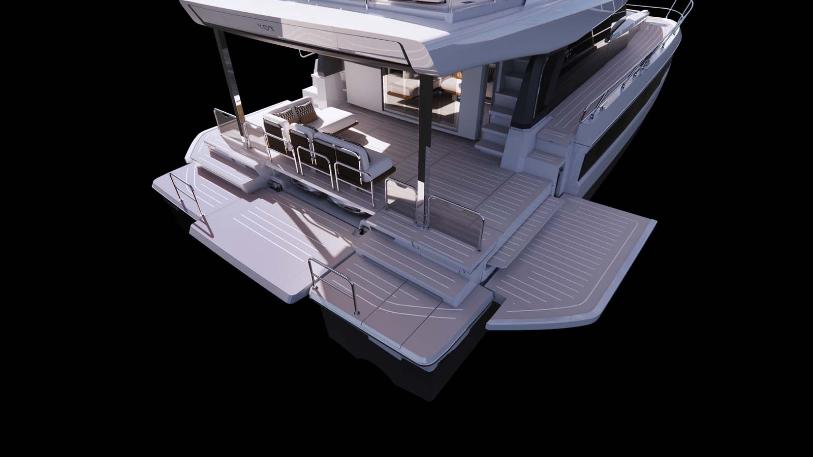 Un pozzetto completamente aperto, grazie alla sua porta basculante, alle terrazze pieghevoli e alla circolazione fluida: lo YOT 53 ti permette di vivere il mare il più vicino possibile agli elementi.